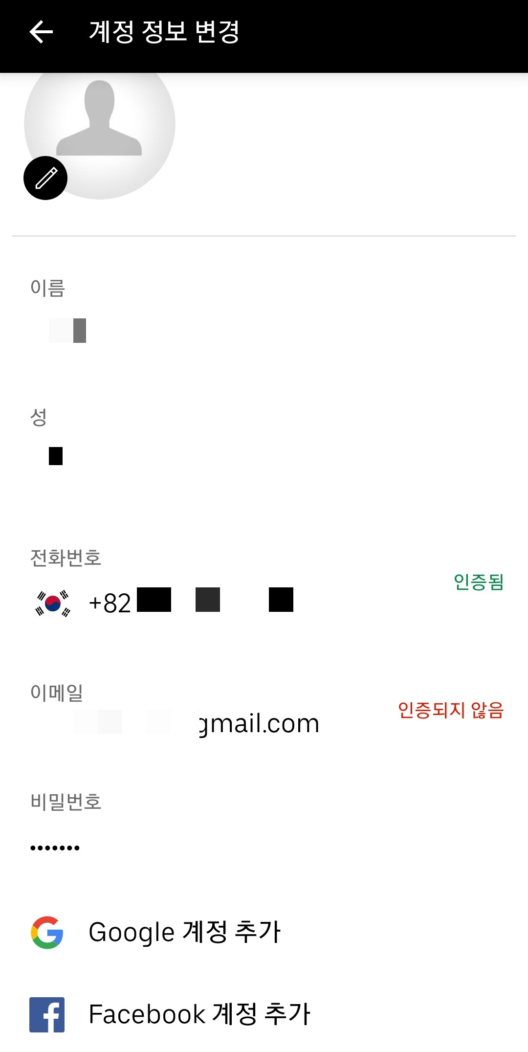 휴대폰 번호와 이메일을 넣어야 합니다. 휴대폰 번호의 경우 기사님이 왔는데 주변에서 찾지 못하고 있을 때 전화가 올 수 있기 때문에 꼭 넣어야 합니다. 또한 이메일은 추후에 추가 인증할 때 필요합니다. 또한 우티(UT)로 택시 호출 사용 이후에 영수증을 이메일을 통해서 보내주고 있습니다.